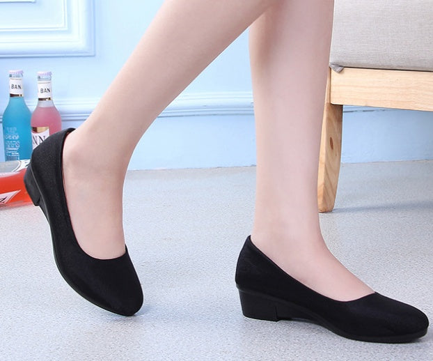 Cloth shoes wedge heel low heel work shoes soft bottom mother shoes