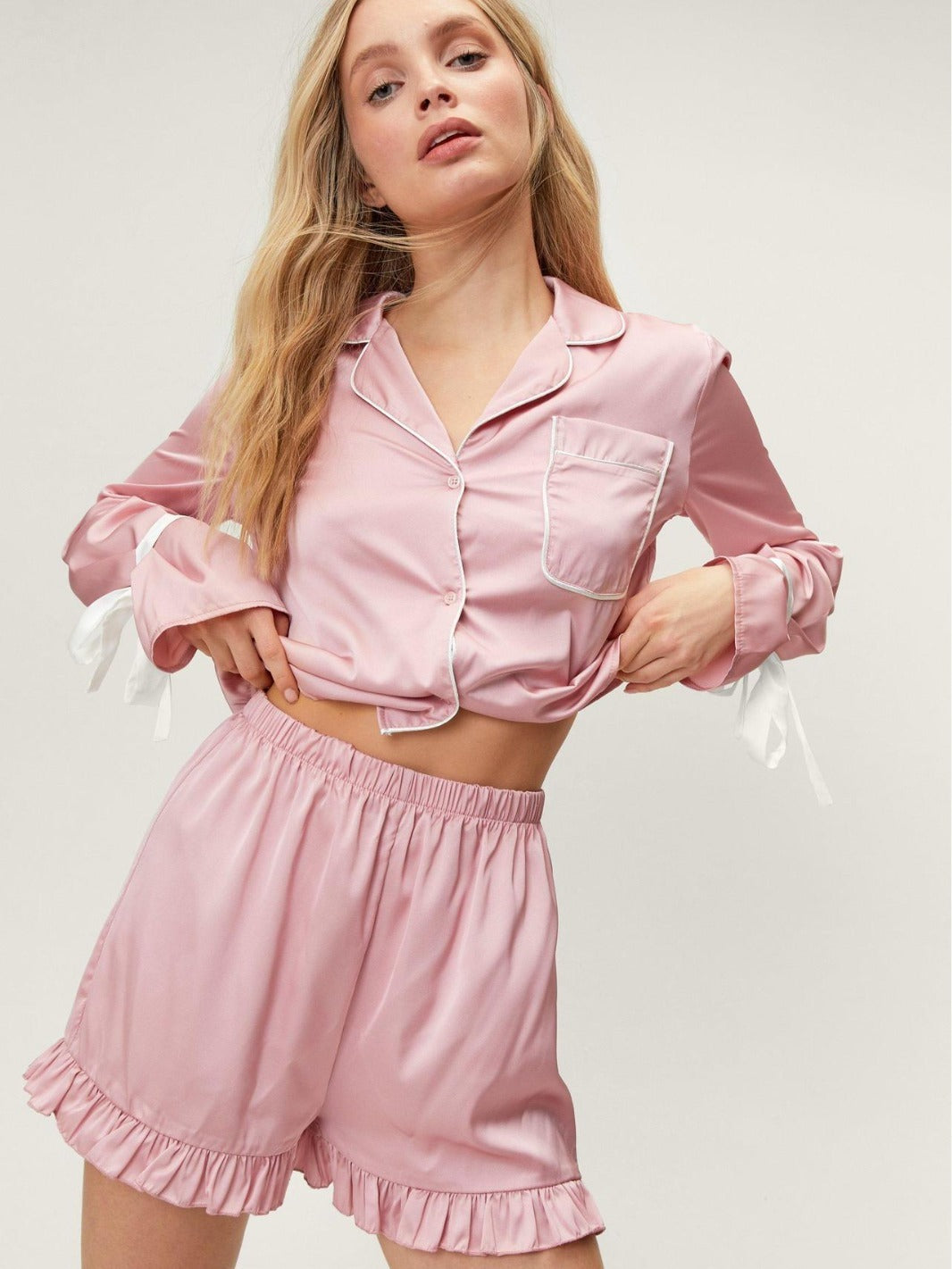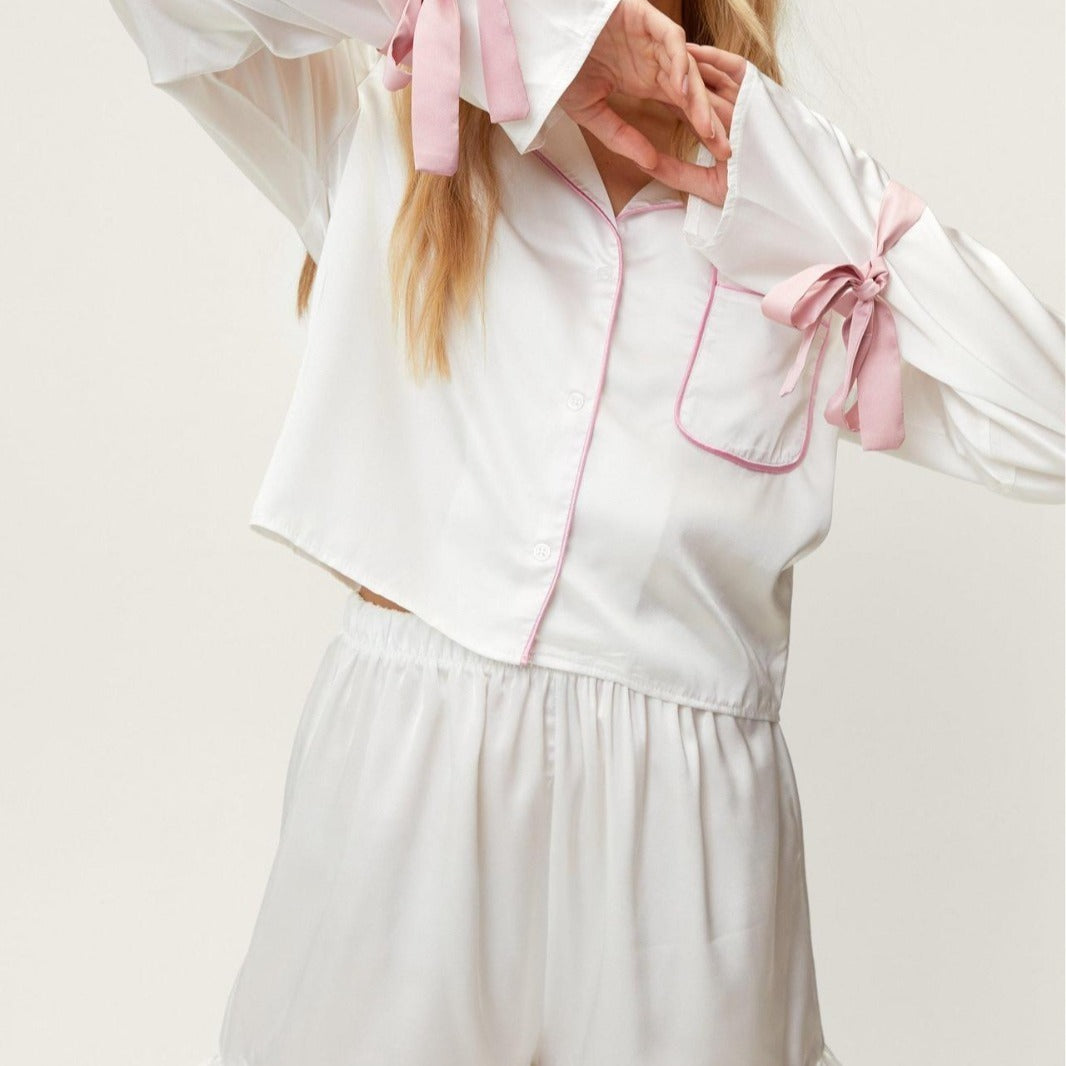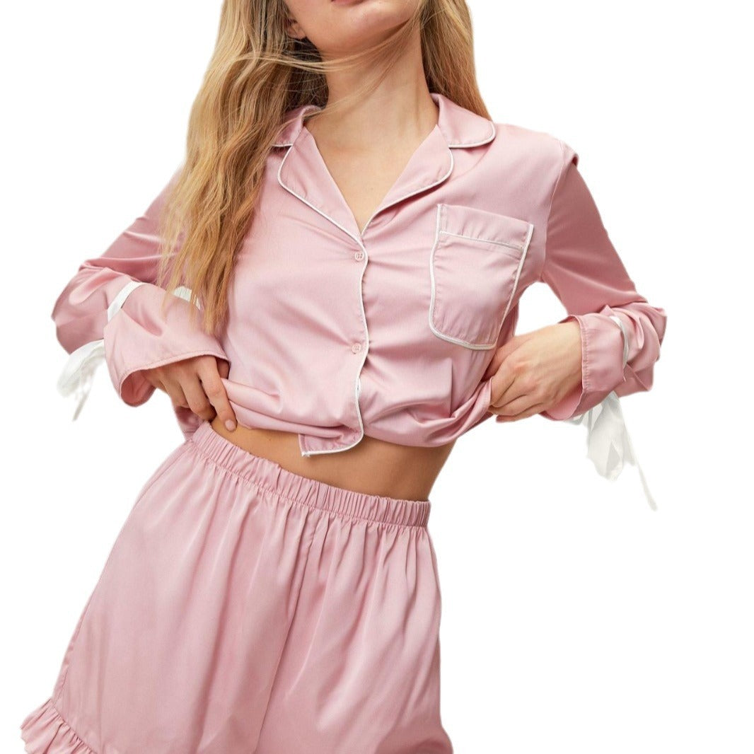 Lapel Long Sleeve Shorts Pajamas Two-piece Set Women's Outerwear Homewear