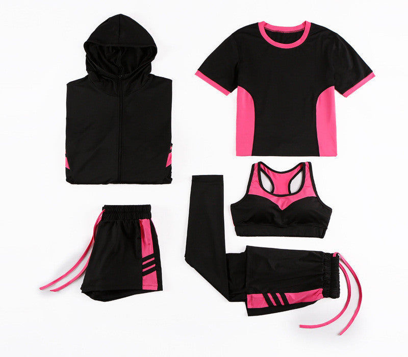 Yoga Clothing Women New Suit Net Red Running Sportswear Five-Piece Loose Leisure Fitness Factory Wholesale